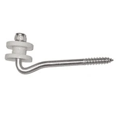Insulator swivels; great for pulling through corners! This black plastic Corner Lag Insulator is mounted to a lag screw bent into the shape of an L. The insulator itself is made with UV-stabilizers to withstand intense weather conditions.